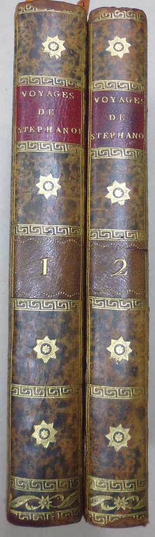 STEPHANOPOLI  DEMO ET NICOLO, Voyage en Grèce, pendant les années 1797 et 1798, t. 1-2. D’après deux missions, dont l’une du Gouvernement français, et l’autre du général  en chef Buonaparte. Rédigé par un des Professeurs du Prytanée. Avec figures, plans et vues levés sur les lieux. A Londres 1800, 8ο, τόμος Α΄ σελ. XVI+303+7εικ. εκτός κειμένου(εκ των οποίων οι 2 αναδιπλούμενες) , τόμος Β΄ σ. 4χ.α.+319+1λ. ( 2 τόμοι δεμένοι, βιβλιοδεσία εποχής. Στον πρώτο τόμο μπροστά δεμένο μαζί : Mémoire sur les trois départemens De Corcire, d’Ithaque et de la mer Egée Par les citoyens D’ ARBOIS FRERES, cidevant officiers de l’état-major-général de l’armée d’Italie, division du Levant part.1-2 . A Paris, DE L’ IMPRIMERIE D’ ANDRE. 1897, 8o, σελ. 104 (αντίτυπο σε πολύ καλή κατάσταση)