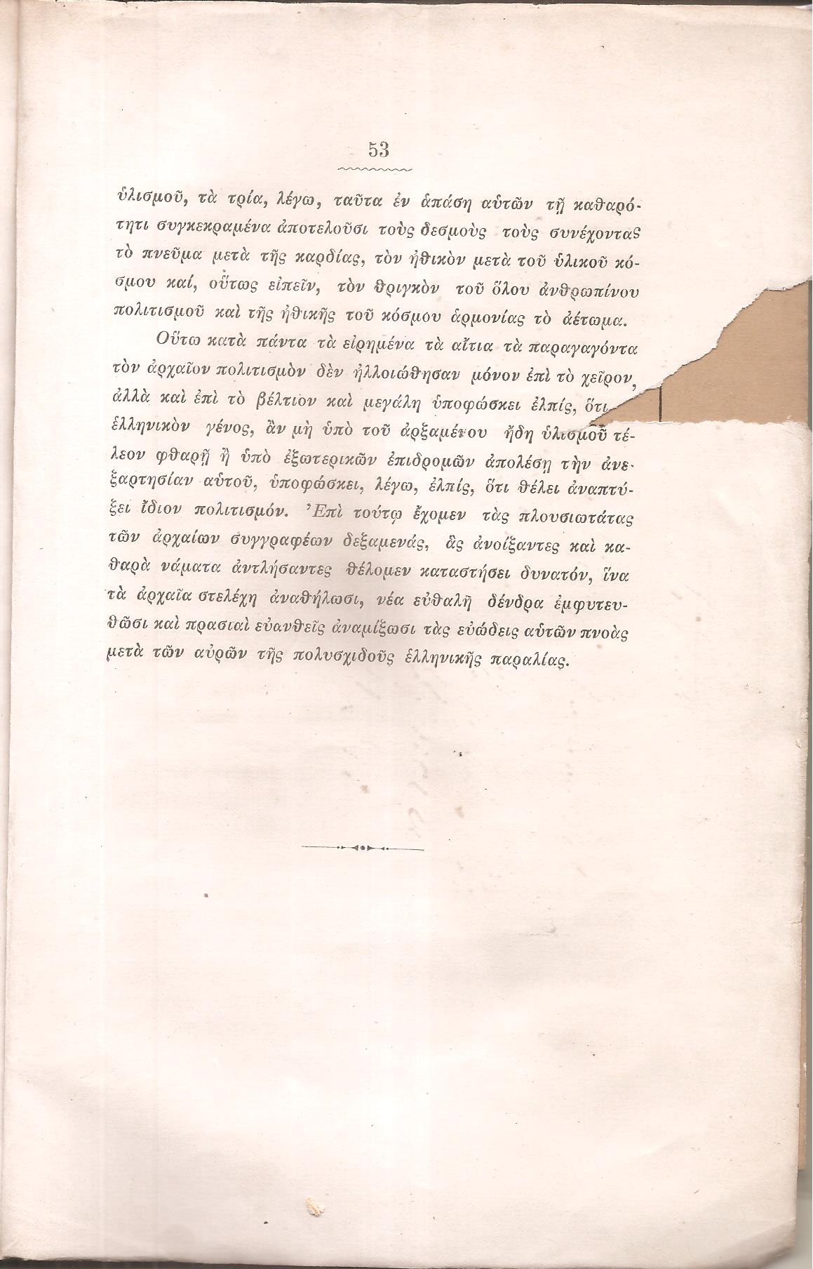ΜΙΣΤΡΙΩΤΗΣ ΓΕΩΡΓΙΟΣ, Τα αίτια του Αρχαίου και του Νεωτέρου Ελληνικού Πολιτισμού. Λόγος απαγγελθείς εν τη μεγάλη αιθούση του Εθνικού Πανεπιστημίου τη 10 Μαρτίου 1891. Εν Αθήναις, ΕΚ ΤΟΥ ΤΥΠΟΓΡΑΦΕΙΟΥ Δ. ΣΑΚΕΛΛΑΡΙΟΥ, 1891, 8ο, σελ. 53+1λ (χωρίς εξώφυλλο, λείπει μικρό κομμάτι 4Χ2εκ. στην τελευταία σελίδα[53], ΗΛΙΟΥ-ΠΟΛΕΜΗ αρ. 1891.821)