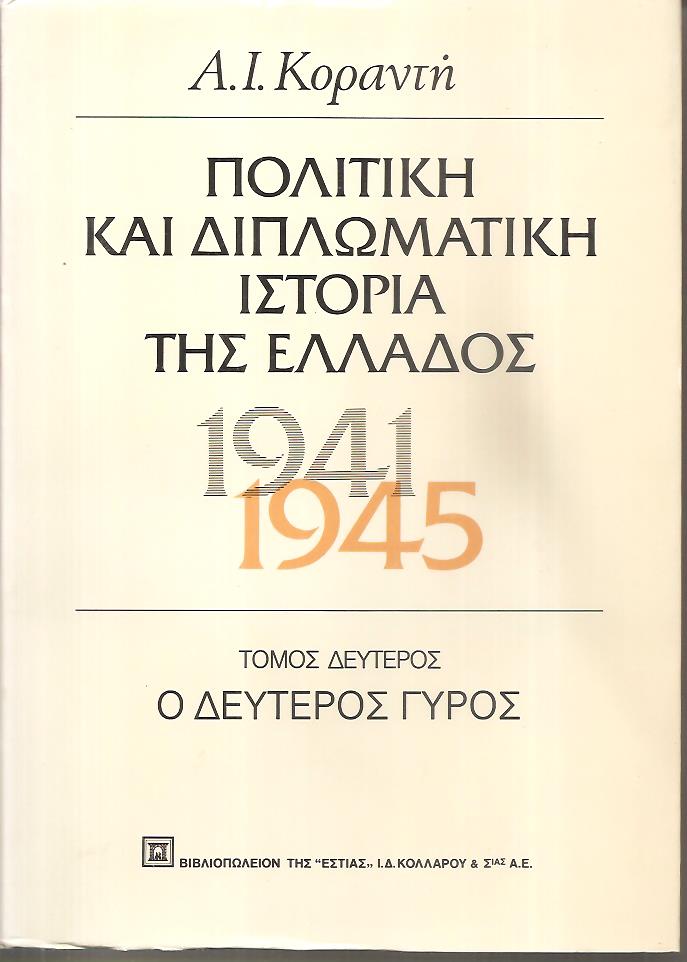 ΚΟΡΑΝΤΗΣ Α. Ι., Πολιτική και διπλωματική ιστορία της Ελλάδος 1941-1945, τόμοι Α+Β. Αθήνα 1987, 8ο, σελ. 361+386