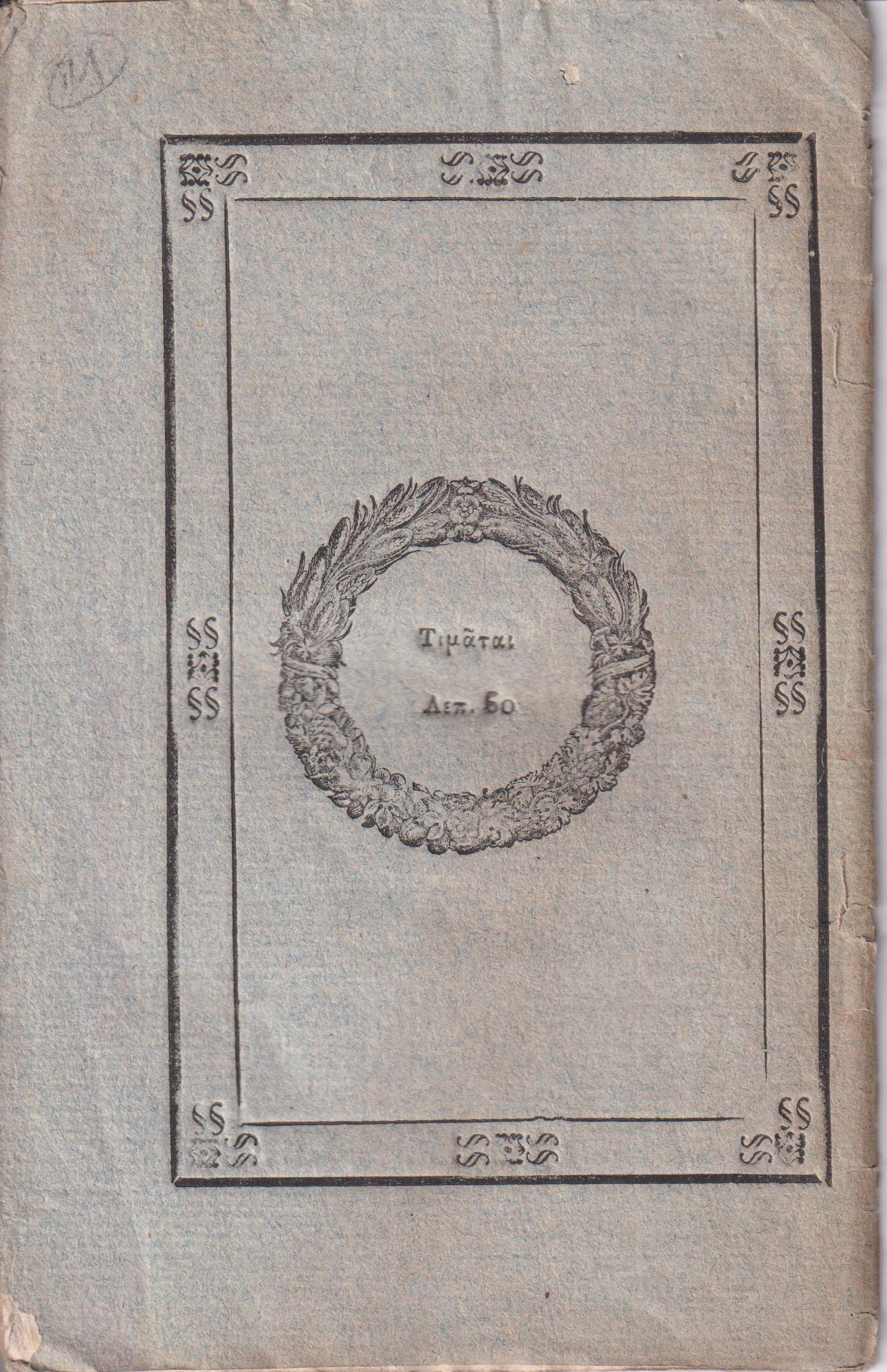 ΣΟΥΤΣΟΣ ΠΑΝΑΓΙΩΤΗΣ, Νεκρικός Διάλογος, και τα ερίπεια της παλαιάς Σπάρτης. Εν Αθήναις, ΕΚ ΤΗΣ ΤΥΠΟΓΡΑΦΙΑΣ Α. ΚΑΙ Ν. ΑΓΓΕΛΙΔΩΝ, 1835, 16ο, σελ. 24 (αντίτυπο σε πολύ καλή κατάσταση, σπάνιο, έκδοση Α΄, ο τίτλος στο εξώφυλλο, ΓΚΙΝΗΣ-ΜΕΞΑΣ αρ. 2530, ΗΛΙΟΥ-ΠΟΛΕΜΗ αρ. 1835.117)