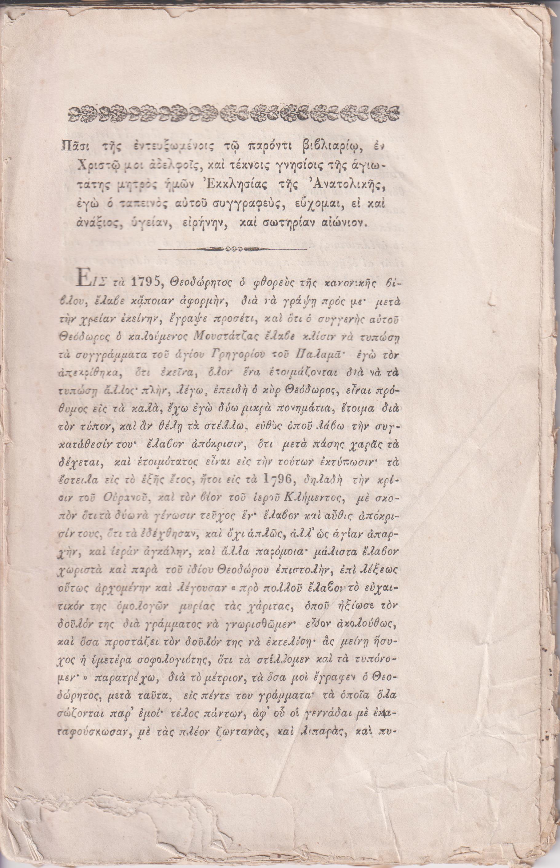 ΟΥΡΑΝΟΥ ΚΡΙΣΙΣ ήτοι θαύμα φρικτόν και εξέσιον του Θαυματουργικωτάτου θείου Σπυρίδωνος, δι’ ου τας βουλάς των παρανόμων Παπιστών, εματαίωσε. Συν τούτω δε, και ο θεοφεγγύς βίος του ιερου Κλήμεντος του Βουλγαροκήρυρικος και Ομολογητού. ΄Εκδοσις Δευτέρα. Εν Αθήναις, ΕΚ ΤΗΣ ΤΥΠΟΓΡΑΦΙΑΣ ΝΙΚΟΛΑΟΥ ΑΓΓΕΛΙΔΟΥ, 1850, 8ο, σελ. ε' +1λ +[7]-103+1λ (αντίτυπο ταλαιπωρημένο λυτό, χωρίς εξώφυλλο, λείπουν σελίδες α΄[σελίδα τίτλου, σε φωτοαντίγραφο]+ β΄, σητόβρωτο μέχρι σελίδα 22 στο κάτω μισό περιθώριο & από σελ. 94-103 στην επάνω εξωτερική γωνία, ΓΚΙΝΗΣ-ΜΕΞΑΣ αρ. 5256 & Μοσχονάς  Ι. αρ. *5256)