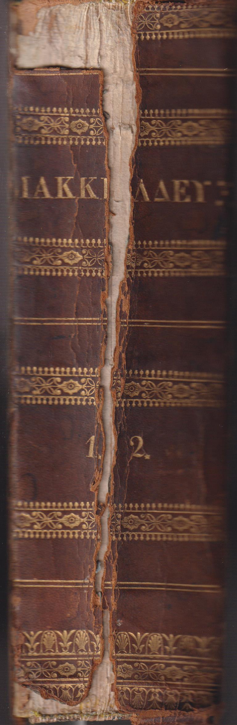 MACKELDEY FERDINAND, Εγχειρίδιον του Ρωμαϊκού Δικαίου, τόμοι Α+Β. Υπό Φερδινάνδου Μακκέλδεϋ, μεταφρασθέν εκ του γερμανικού υπό Γ. Α. Ράλλη και Μ. Ρενιέρη. Ω προσετέθησαν και αι παραθέσεις των Βασιλικών. Τόμος πρώτος περιέχων την εισαγωγήν και το γενικόν μέρος, τόμος δεύτερος περιέχων το ειδικόν μέρος. Εν Αθήναις, ΕΚ ΤΗΣ ΤΥΠΟΓΡΑΦΙΑΣ Κ. ΡΑΛΛΗ, 1838, 8ο, σελ ρπη΄+140+1χ.α.+3λ+775+1λ. (οι δύο τόμοι δεμένοι μαζί, βιβλιοδεσία εποχής, η ράχη ανάποδα και το δέρμα της σπασμένο)
