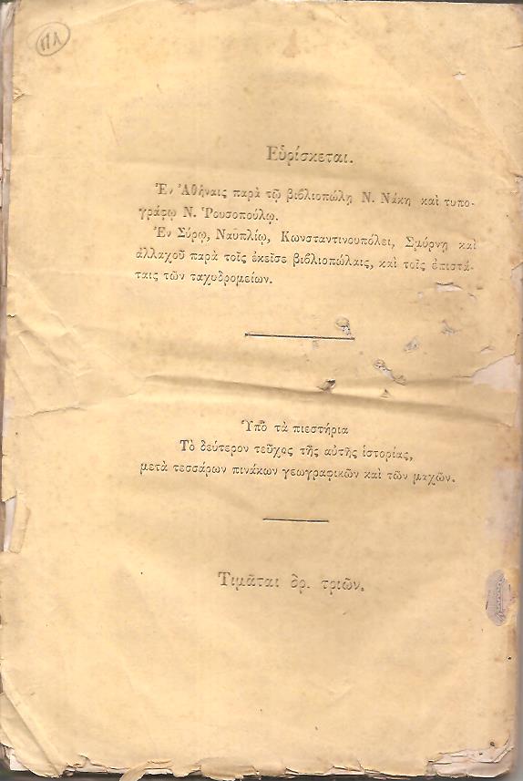 ΒΟΡΒΣΤΑΙΔ Α., Ιστορία του Γερμανο-Γαλλικού πολέμου 1870. Καθ’ όλην την ακρίβειαν εκτεθειμένη…μεταφρασθείσα εκ του γερμανικού υπό Αλεξάνδρου Γκαρμπολά. Εν Αθήναις, ΕΚ ΤΟΥ ΤΥΠΟΓΡΑΦΕΙΟΥ ΝΙΚΟΛΑΟΥ ΡΟΥΣΟΠΟΥΛΟΥ, 1871, 8ο, σελ. η΄+160 (αντίτυπο ταλαιπωρημένο, λυτό, ΗΛΙΟΥ-ΠΟΛΕΜΗ αρ. 1871.707)