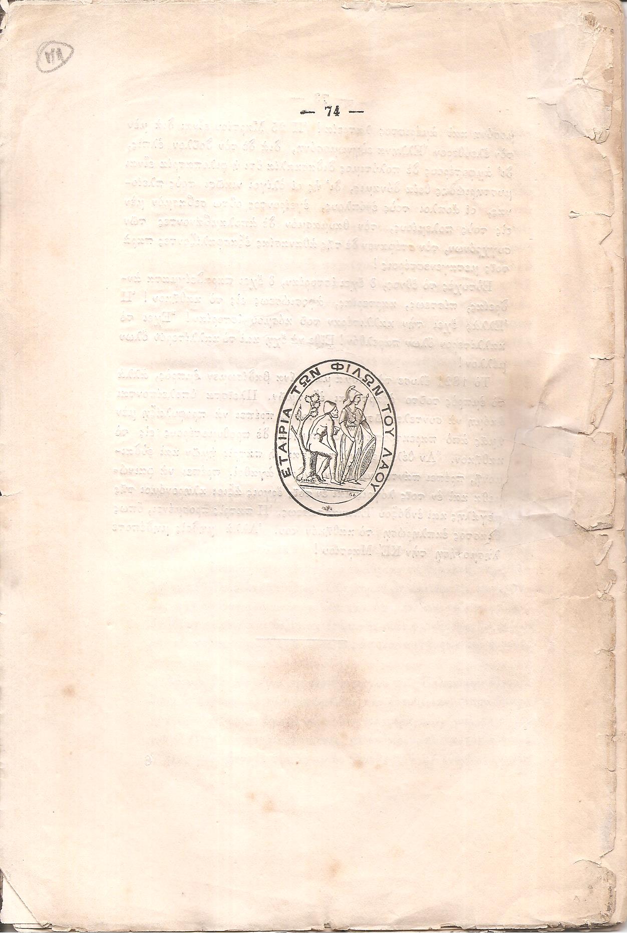 ΕΤΑΙΡΙΑ ΤΩΝ ΦΙΛΩΝ ΤΟΥ ΛΑΟΥ-ΦΥΛΛΑΔΙΟΝ 1Δ΄-1887, Γενική Συνέλευσις της Εταιρίας των Φίλων του Λαού κατά το έτος 1887. 8ο, σελ. 74 (η αρίθμηση από το εξώφυλλο, σπάνιο, ΗΛΙΟΥ-ΠΟΛΕΜΗ αρ. 1887.300, προγενέστερη βιβλιογράφηση-πηγή: Δελτιοκατάλογος ΒΒ-Μαυρής αρ. Α23)