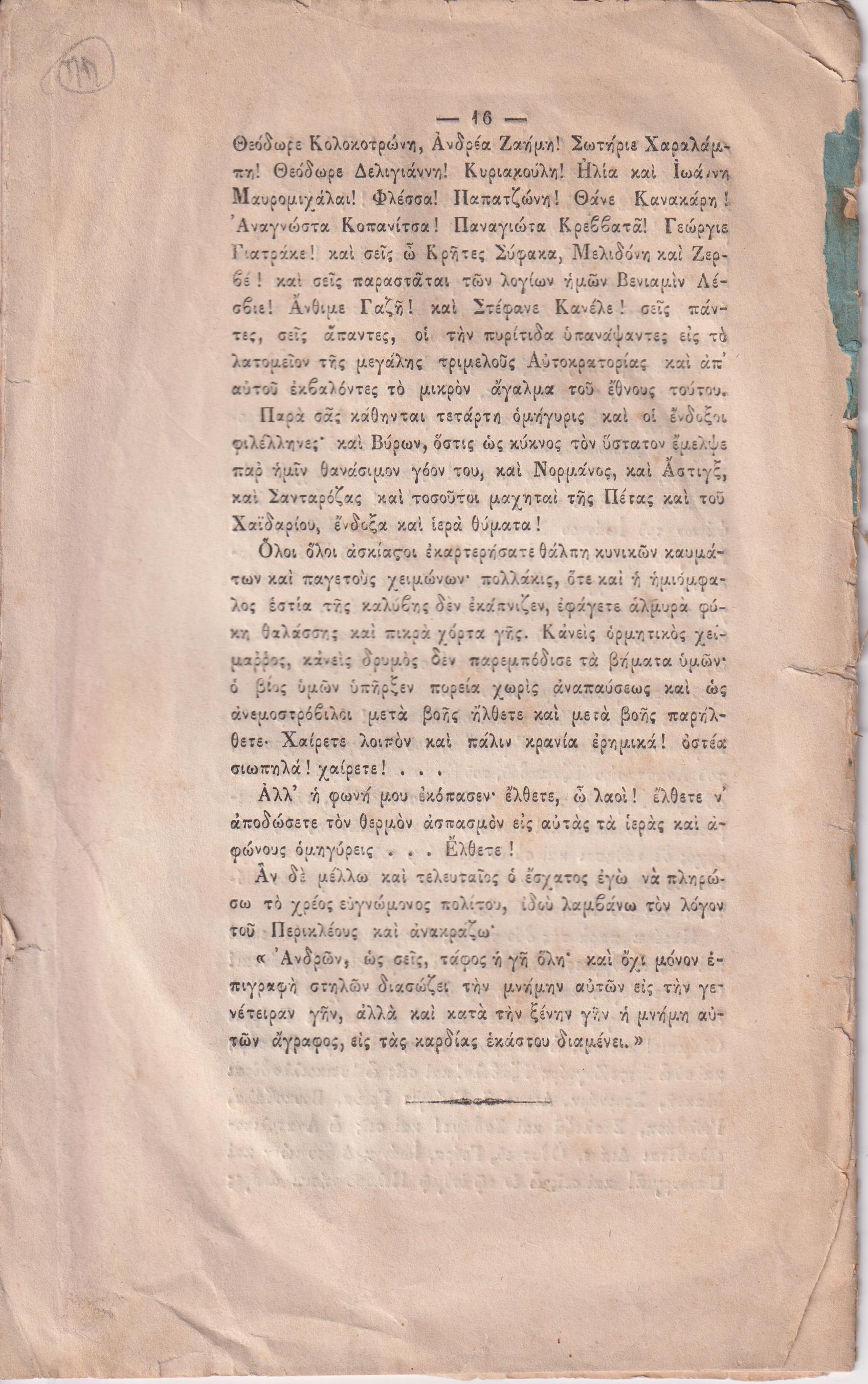 ΣΟΥΤΣΟΣ ΠΑΝΑΓΙΩΤΗΣ, Αυτοσχέδιος Λόγος Πανηγυρικός των υπέρ Πατρίδος πεσόντων κατά τον Ελληνικόν Αγώνα, προφερθείς εις την Εικοστήν Πέμπτην Μαρτίου ημέραν επέτειον αυτού. Εν Αθήναις, ΕΚ ΤΗΣ ΦΙΛΟΛΑΟΥ ΤΥΠΟΓΡΑΦΙΑΣ, 1846, 8ο, σελ. 16 (αντιτυπο ταλαιπωρημένο, χωρίς εξώφυλλο, ΓΚΙΝΗΣ-ΜΕΞΑΣ αρ. 4408)