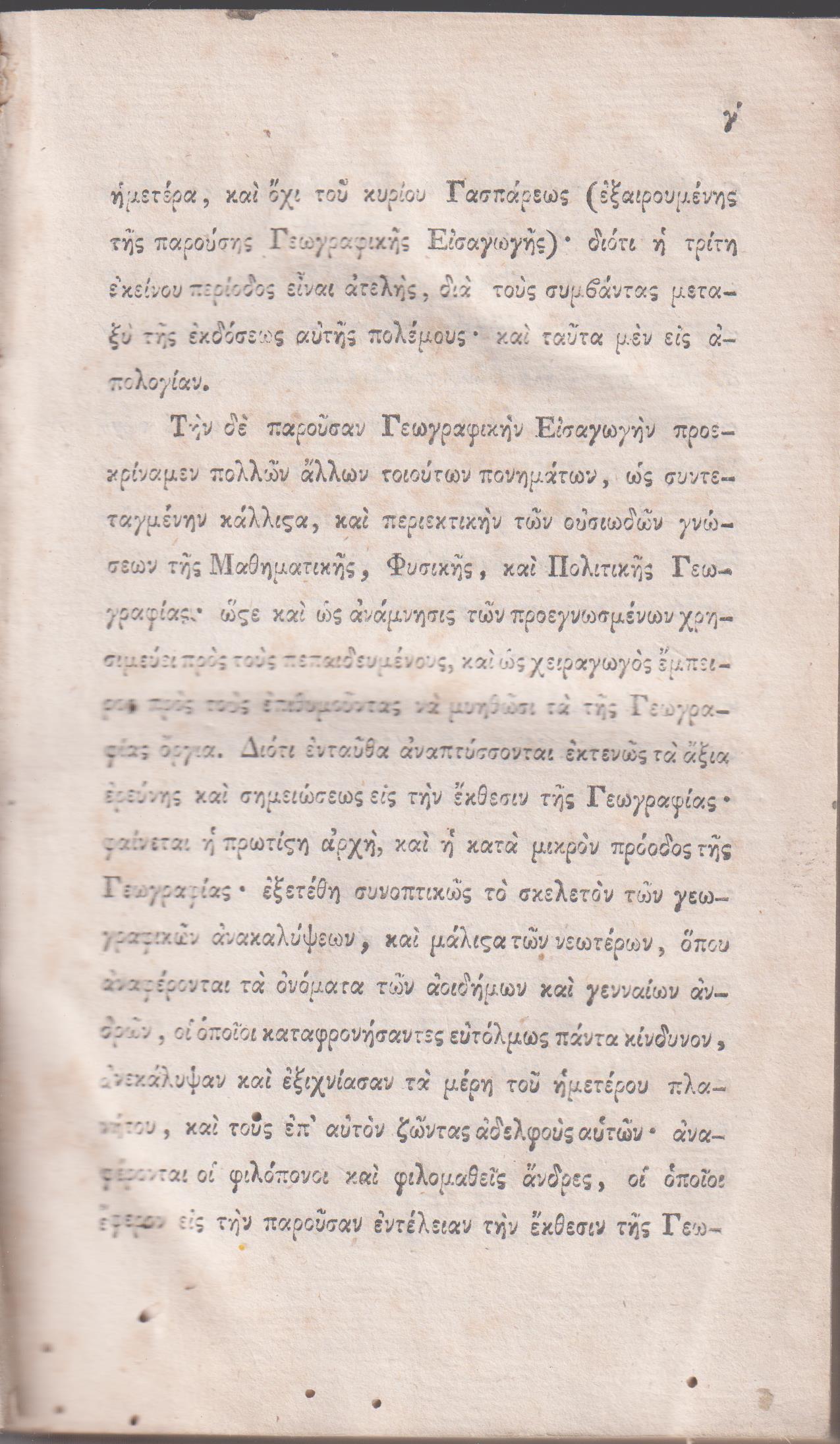ΓΑΣΠΑΡΕΩΣ ΑΔΑΜ. Χ., Εισαγωγή Γενική της Γεωγραφίας. Εις πλήρη της γης γνώσιν. Τόμοι Α΄-Β΄. Εξελληνισθείσα υπό των Αδελφών Καπετανάκη. Εν Βιέννη της Αουστρίας, κατά την Τυπογραφίαν Ιωάννου Σνείρερ, 1816, 8ο, τ. Α΄, σελ. φ.1 +θ΄+1λ+415+1λ+πίν., τ. Β΄, φ.1+416+δ΄+16χ.α.[κατάλογος Συνδρομητών] +4χ.α.[Προκήρυξις Αδελφών Καπετανάκη.Εν Βιέννη της Αουστρίας 1816 τη 1 Ιουλίου] (οι δύο τόμοι δεμένοι με διαφορετική βιβλιοδεσία εποχής πολύ ταλαιπωρημένη κυρίως ο΄τ. Α΄. Στον τόμο Α΄ μειονεκτήματα: οξειδώσεις στο χαρτί και σητόβρωτο στις περισσότερες σελίδες κυρίως μικρές τρύπες στα κάτω περιθώρια, εκτός από σελ. 193-221 [1χιλιοστ.Χ6εκατ.] που επηρεάζεται και το κείμενο, στον τόμο Β΄, οξειδώσεις στο χαρτί, και γενικά σε καλύτερη κατάσταση, τ. Α΄ ΗΛΙΟΥ 1816.31 & τ. Β΄1816.32)
