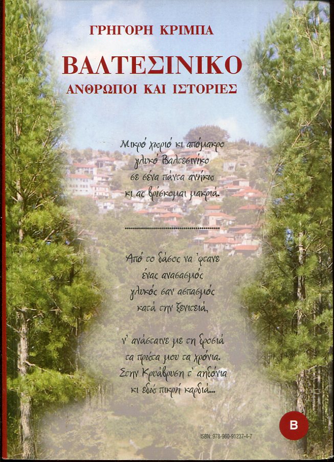 ΚΡΙΜΠΑΣ ΓΡΗΓΟΡΗΣ, Βαλτεσινίκο, τα παραλειπόμενα. Καλαμάτα 2008, 8ο, σελ. 192 [μαζί δεμένο] του ιδίου, Βαλτεσινίκο, ʼνθρωποι και ιστορίες. Καλαμάτα 2008, 8ο, σελ. 216