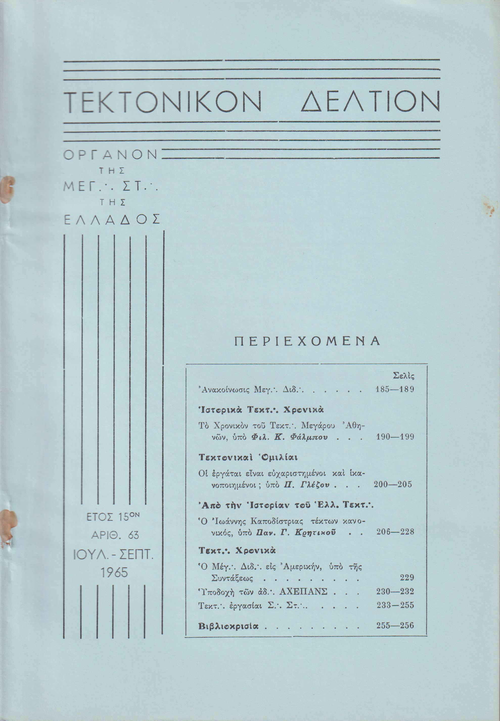 ΤΕΚΤΟΝΙΚΟΝ ΔΕΛΤΙΟΝ, 1965, έτος 15ον,΄Οργανον της Μεγάλης Στοάς της Ελλάδος