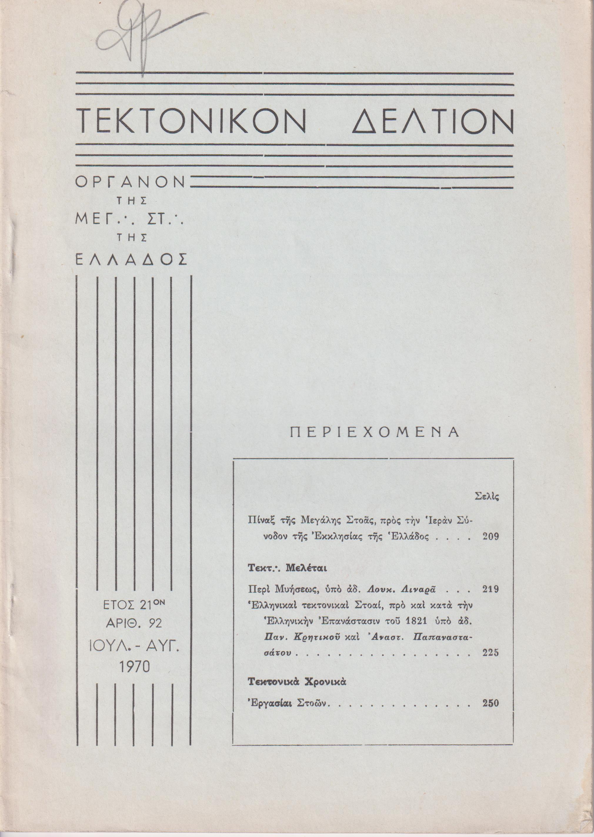 ΤΕΚΤΟΝΙΚΟΝ ΔΕΛΤΙΟΝ, 1970, έτος 21ον, ΄Οργανον της Μεγάλης Στοάς της Ελλάδος